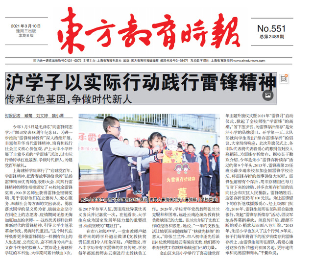 东方教育时报:沪学子以实际行动践行雷锋精神