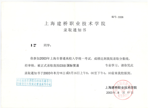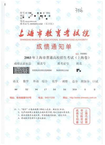 [昔档今忆]2003年普通高校招生成绩通知单和录取通知书