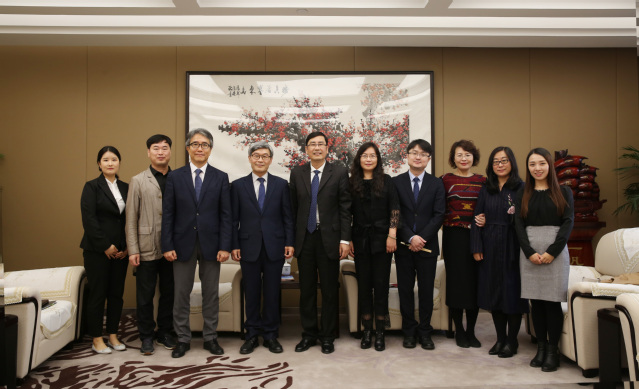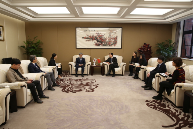 11月11日上午,韩国明知大学李垣根副校长一行莅临我校。校长朱瑞庭在S410会见来宾。新闻学院院长王梅芳、对外交流办公室副主任梁月泉陪同接待。