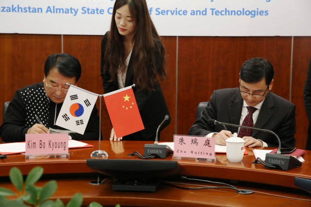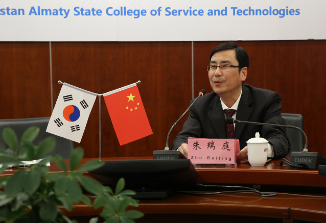 首先,朱瑞庭校长介绍了我校在地理环境、院系建设、人才培养等方面的情况。朱瑞庭表示,上海作为文化之都,非常重视文化创意产业。我校也非常重视艺术相关专业的发展,大力推动国际交流合作。中国与韩国、哈萨克斯坦作为好邻居、好朋友,愿双方合作发展顺利,希望彼此学生间也能建立起良好的友谊。