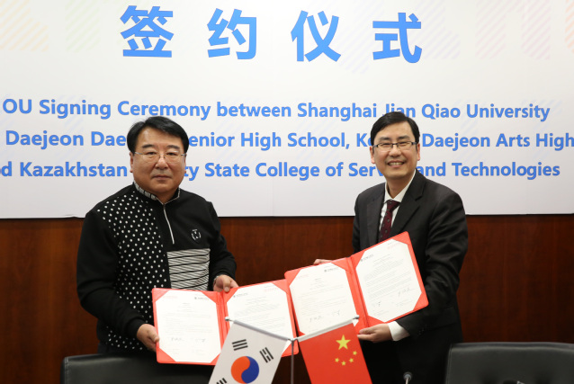 韩国大田大松高级中学校长Chun Inkwon表示,非常荣幸能够和上海建桥学院建立这样的友谊,希望双方合作愉快。