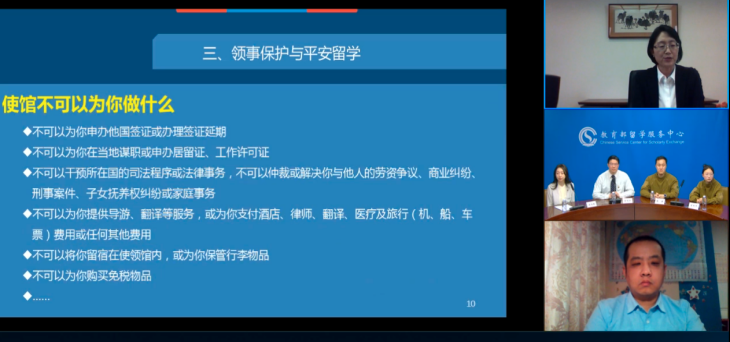 海外新冠肺炎疫情依然严峻,日本政府近期进一步放开了对国际学生的入境限制,为体现党和国家对留学人员的关心关爱,切实增强广大留学人员的安全防范意识,提高应对各种风险的能力,教育部中国留学中心联合中国驻日本大使馆于东京时间4月8日(周五)15:30,北京时间时间4月8日(周五)14:30,举办平安留学伴你行日本线上专场活动。我校国际教育学院组织了中日合作项目内的教师、辅导员、学生联合观看了线上培训会。