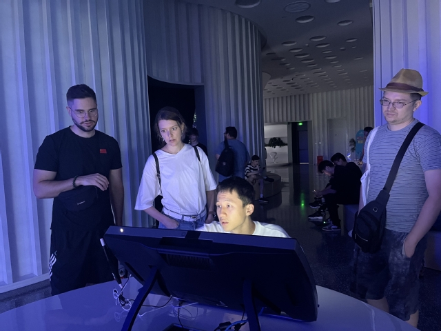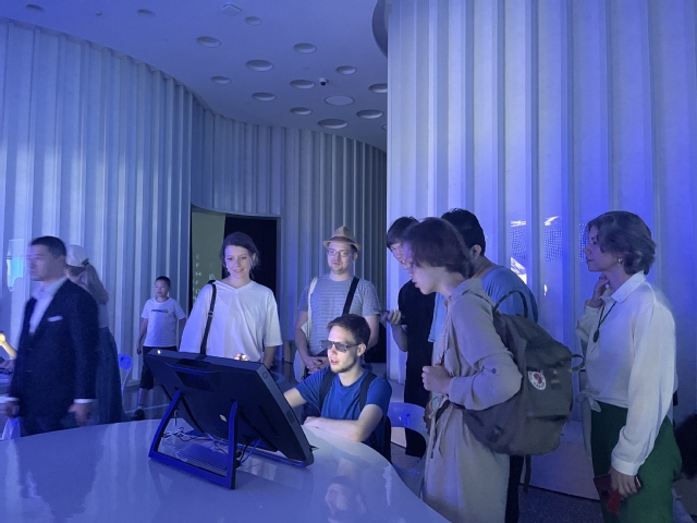 上海棋牌文化博物馆内有千余件藏品,其承载着中国棋牌文化的悠久发展历史,让这届热爱围棋的国际学员们十分向往。步入博物馆大厅,光影交错,陈设格调具有现代派风格,现场参与人机互动、盖章打卡,学员们体会到中国源远流长的棋牌之魂,感触颇深。