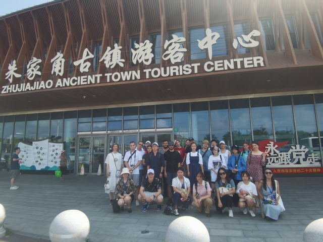桥街相连,依河筑屋,小船轻摇,绿影婆娑,朱家角古镇以“小桥流水人家”格局映入国际学员们的眼帘。走在镇中小街,手工糕点、鲜肉粽、焖蹄的香味扑鼻而来,尽享中国江南特色城镇温婉而沉静之美。