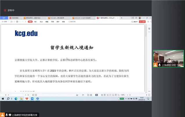 京都情报大学院大学留学生业务部周庭老师向各位同学详细讲解了留学生新规入境通知、入境注意事项及入境流程,并祝大家顺利入境,开启留学新篇章。