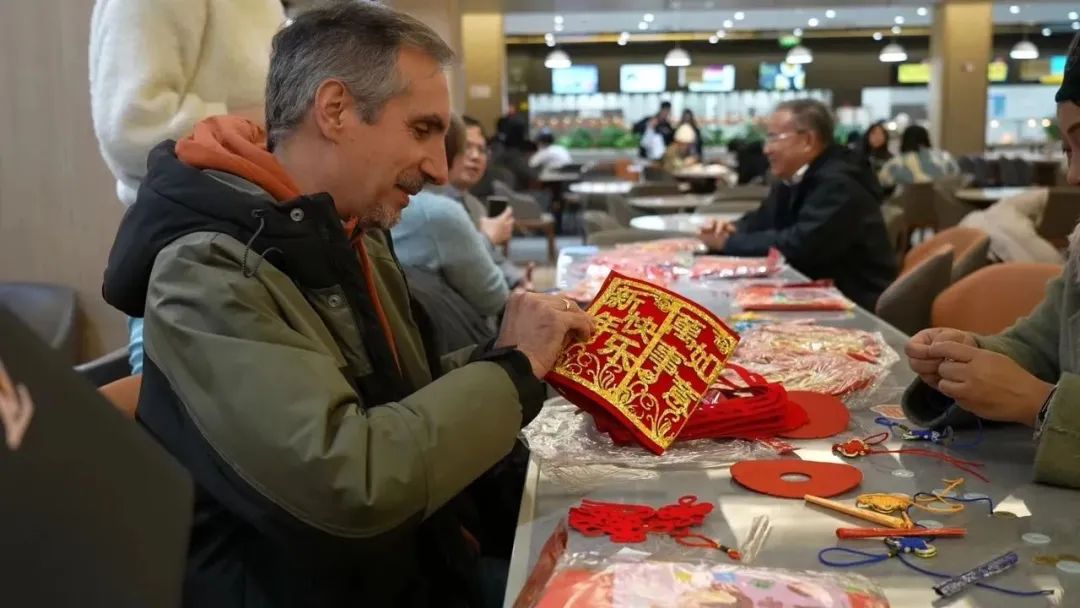 在元旦佳节来临之际,12月21日下午,一场别开生面的文化体验活动在我校南三桃源餐厅举行。来自不同国家和地区的师生们齐聚一堂,共同感受中国传统文化的魅力,为即将到来的元旦佳节增添浓厚的文化氛围。