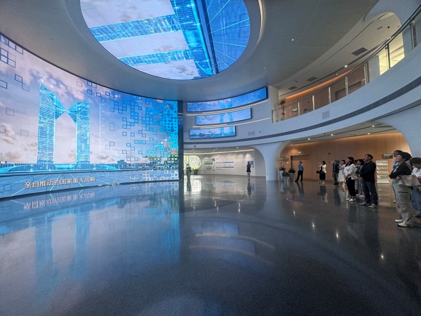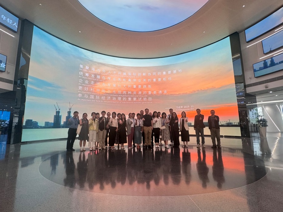 6月28日,参会代表前往我校开展交流和学习,实地调研上海临港大学城和临港新片区滴水云厅规划展示中心。