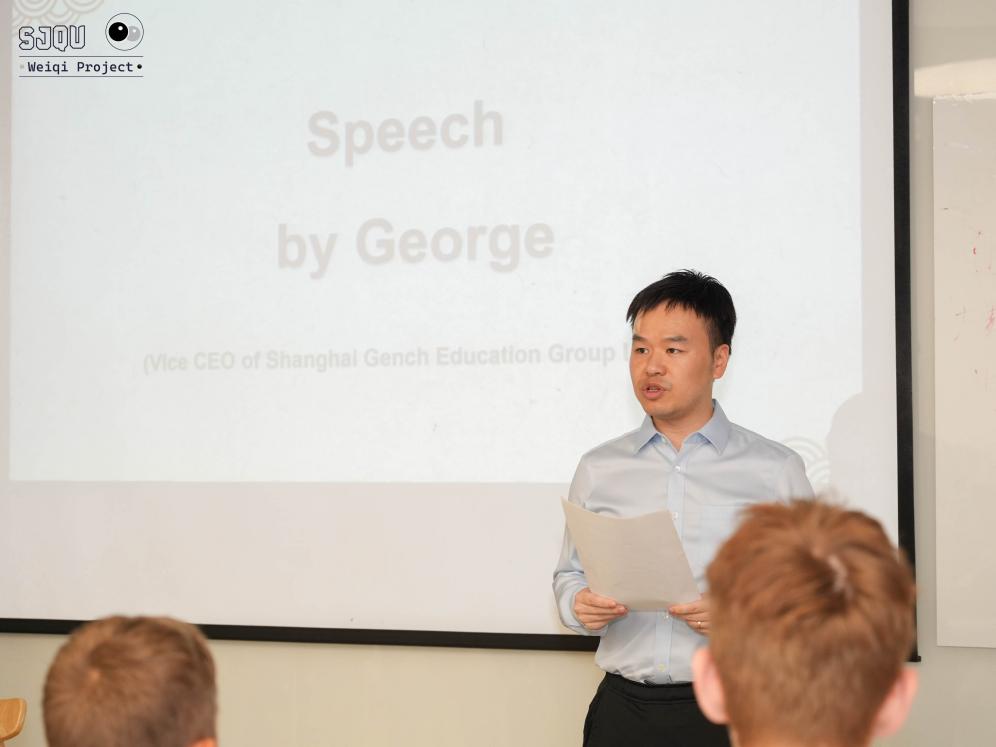 最后,围棋班总教练孙德常教授致辞。孙教授表示很开心见证了学员们在建桥学习和成长的点点滴滴。大家不仅废寝忘食地下棋,还积极学习和体验中国的生活方式,这种刻苦认真的态度让他印象深刻。他感受到大家对围棋的强烈热爱,为他们取得很大进步而欣慰和骄傲。孙教授鼓励学员,输掉比赛不代表在现实生活中就是失败者,在输掉比赛的经历中总结经验,磨炼意志,终将能成为坚定的人。他希望众人坚持初心,为围棋在全球的传播推广做出更大贡献。