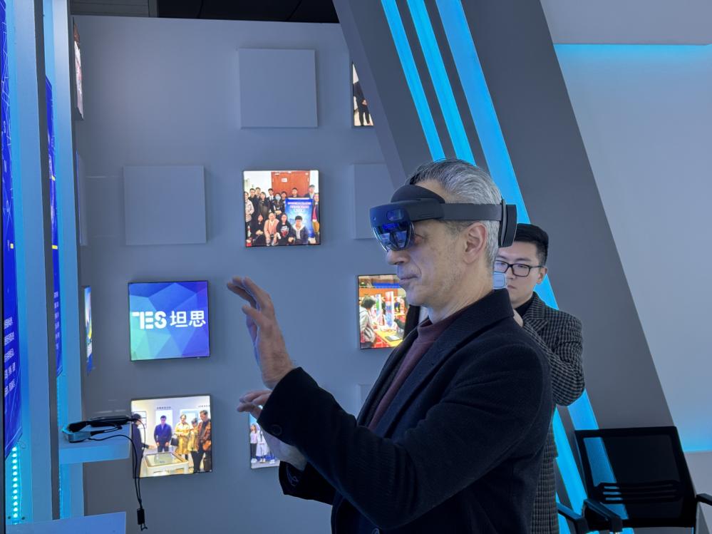 Filipe de Castro Soeiro校长一行参观了信息技术学院观物联网工作室、数字媒体虚拟现实课堂,现场体验了数字媒体虚拟现实设备,德方对我校的教学环境和教学水平给予高度评价。