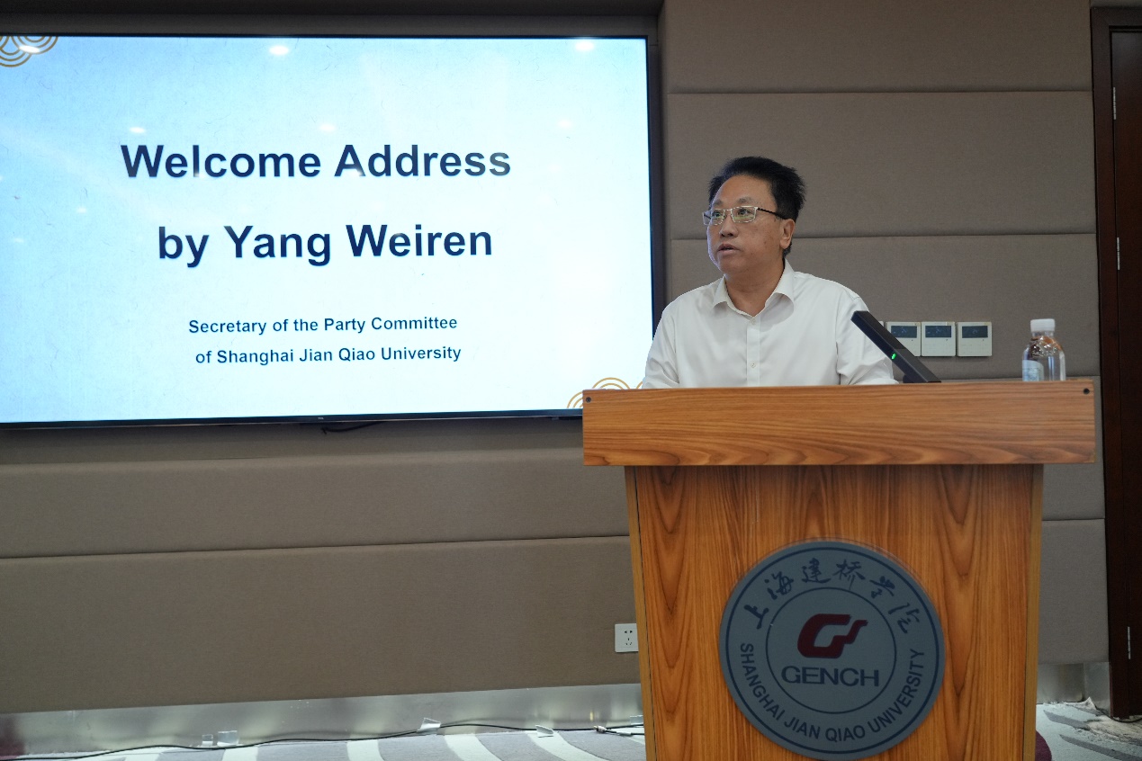 校党委书记杨伟人致欢迎辞。他向所有学员以及老师们表达诚挚的欢迎和衷心的感谢,并向大家介绍了位于东海之滨的上海建桥学院的地理位置之优越、办学规模之显著、教学资源之雄厚。他强调,围棋是中华民族的文化瑰宝,承载着东方哲学智慧,我校始终将围棋视为智育与文化的桥梁。十年来,我校累计承办九届暑期围棋班,课程设置涵盖围棋技法、中国书画、汉语研修,持续探索“围棋文化走出去”的创新模式。他表示,在接下来的中国围棋班中,希望大家能够在棋枰之间,启迪心智、收获友谊,既精进弈术,更领悟“棋如人生”的深远境界。