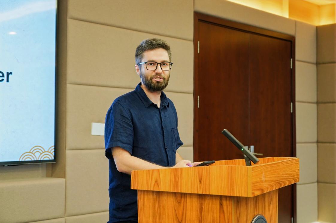 优秀助理教练员代表冯靖宇分享了他的工作感悟。他表示围棋跨越了国界和文化,使大家相聚在一起。与学员们共同学习的时光短暂且有意义,他获得了宝贵的经验,更与俄罗斯、蒙古学员们结下了深厚友谊。随着日常生活中的接触和沟通,助理教练员与学员们深刻感受到围棋的博大精深和独特魅力,大家通过相互理解与合作克服了种种挑战。他衷心祝愿每一个学员继续成长,在围棋和人生中取得新的里程碑。