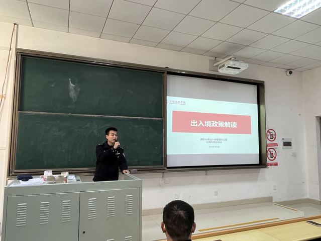 紧接着在对外交流办公室副主任陈栋鑫主持下,浦东分局出入境管理办公室的胡警官和上海机场边检站彭警官为国际教育学院学生们带来两场干货满满的讲座。