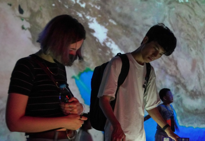 在参观学习过程中,留学生们身临其境,沉浸式、全方位地感受科技奥妙。不少留学生被一楼大厅内的“傅科摆”吸引,纷纷驻足欣赏,随后步入“家园”展区,直面银河系的壮美。接着步入“宇宙”和“征程”展区,参观学习人类探索宇宙的伟大历程。