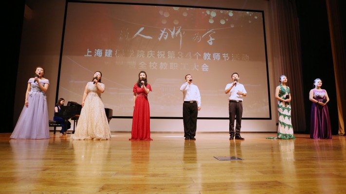 会上,周健儿副校长为第三届上海高校青年教师教学竞赛决赛获奖者孙文波、支颖雪、陈苏婷、覃岳锋、沈依慧、胡银平颁发奖金。为弘扬全社会尊师重教的风尚,在上海市教育委员会和中国教育工会上海市委员会的主持下,新版的上海市从事教育工作三十年证书今年启用,我校共有56名教职工从事教育工作已经达到或超过了30年,随着现场大屏幕的滚动,他们名字的出现,让全体教职工感受到了老教师们的温度。