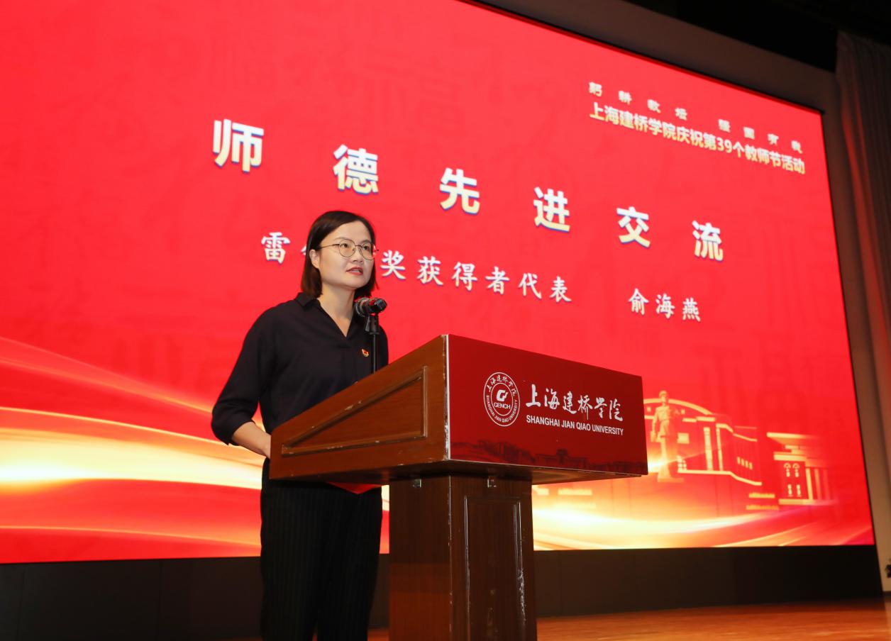 教职工雷锋奖获得者俞海燕、“我心中的好老师”代表肖晶分享了他们在实践教学中,对潜心立德树人、坚定做“四有”好老师、“四个引路人”的体验和感悟,表达了对教师职业的敬畏以及立足教师岗位,培育学生成长成才的成就感和归属感。