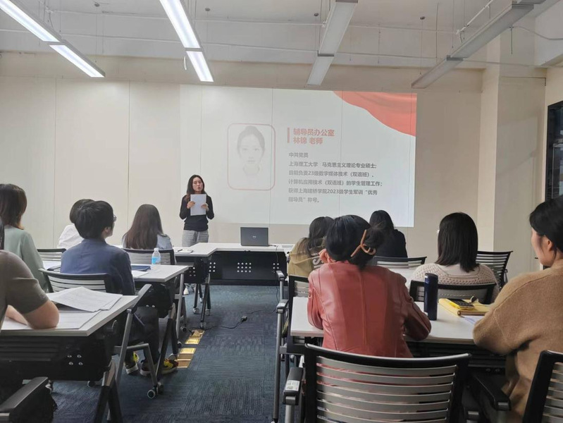 学工办林锦老师从辅导员岗位职责,分享了如何快速成长为一名合格且优秀的辅导员。林老师提到:作为教育工作者,要不断加强自身的思想政治修养和师德师风建设,始终坚持以人为本、以德育人,培养出更多有才有德的人才,为建设祖国更加美好的未来而不懈努力。