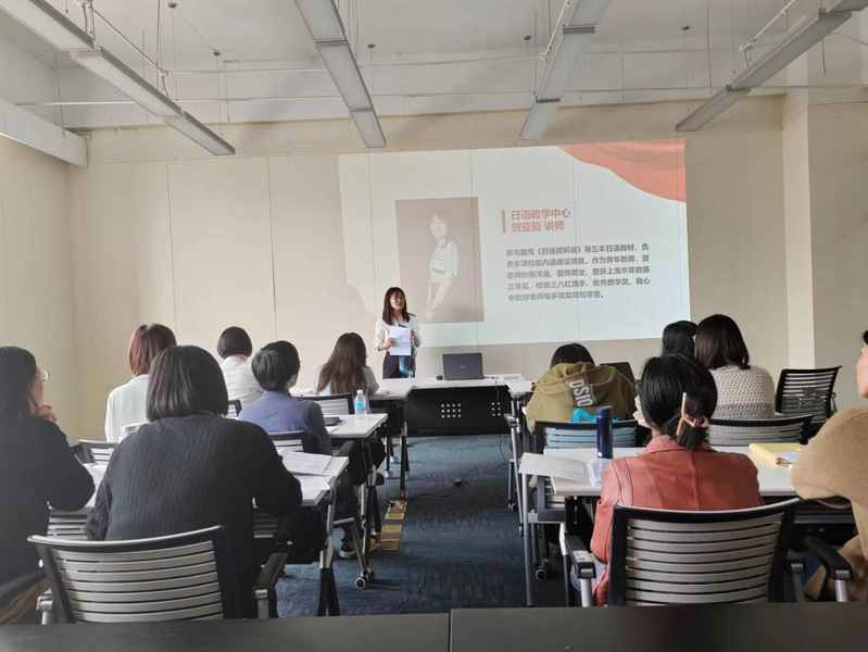 随后,日语教学中心、学工办、行政管理办公室三个部门教师代表以“躬耕教坛,强国有我”为主题,分别进行了交流发言。
