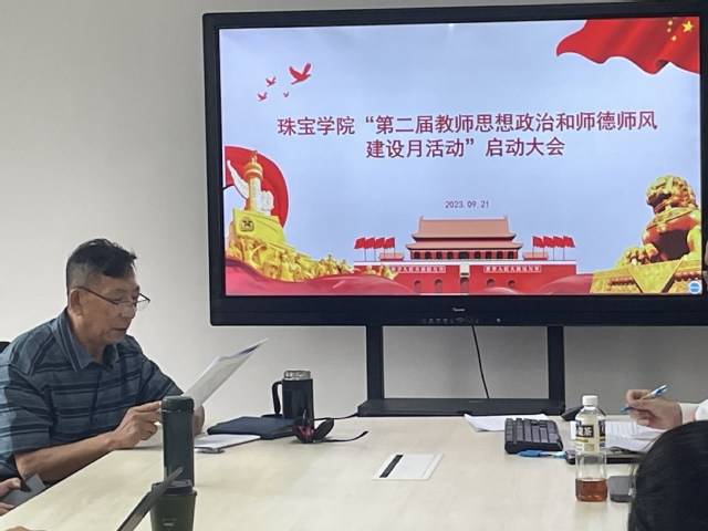 为进一步强化政治引领,形成良好的院风系风、教风学风,引导广大教师坚定理想信念、陶冶道德情操、涵养扎实学识、勤修仁爱之心,2023年9月21日,珠宝学院党总支组织召开第二届教师思想政治和师德师风建设月启动大会。本次会议由珠宝学院院长刘衔宇主持,学院全体教职工参会。