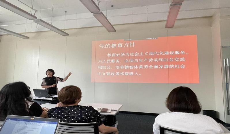 今天,周英芬书记从对“党的教育方针”解读开始,重点讲了三个方面的内容,一是培养德智体美劳全面发展的社会主义建设者和接班人;二是扎实推动教育强国建设;三是习近平总书记关于师德师风的重要论述。鼓励教师争做“四有”好老师、做学生成长成才的“四个”引路人,做学生为学、为事、为人的大先生,为党育人、为国育才,为教育强国建设贡献自己的力量。