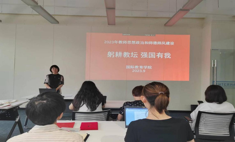2023年9月21日下午,国际教育学院在四楼会议室召开“躬耕教坛,强国有我”教师思想政治和师德师风建设月动员会,会议由学院办公室主任张文静主持,学院全体教职工参加会议。