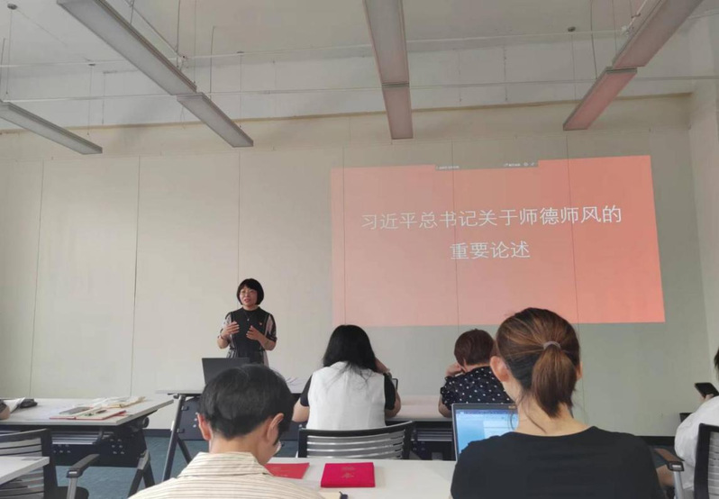 第五项议程,金秋9月迎来了学校“第二届教师思想政治和师德师风建设月活动”,周英芬书记在会上传达了《中共上海建桥学院委员会关于进一步加强和改进教师思想政治和师德师风建设工作的实施意见》和《中共上海建桥学院委员会关于举办哲学社会科学类报告会、研讨会、讲座、论坛管理办法(讨论稿)》两份文件精神。之后,她介绍了学院教师思想政治和师德师风建设月活动方案,共有8项内容,既有理论学习,又有学习人民教育家的先进事迹,还安排了学院优秀教师成长经验分享会、外出参访和教师思政及师德师风建设案例收集等活动,丰富多彩。