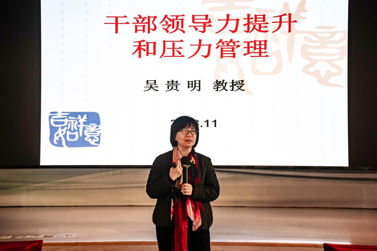 享受国务院特殊津贴专家、二级教授吴贵明作了《干部领导力提升和压力管理》的专题报告。她从决策力的提升、执行力的提升、学习力的提升和压力管理四方面向培训人员分享了自己的管理经验。