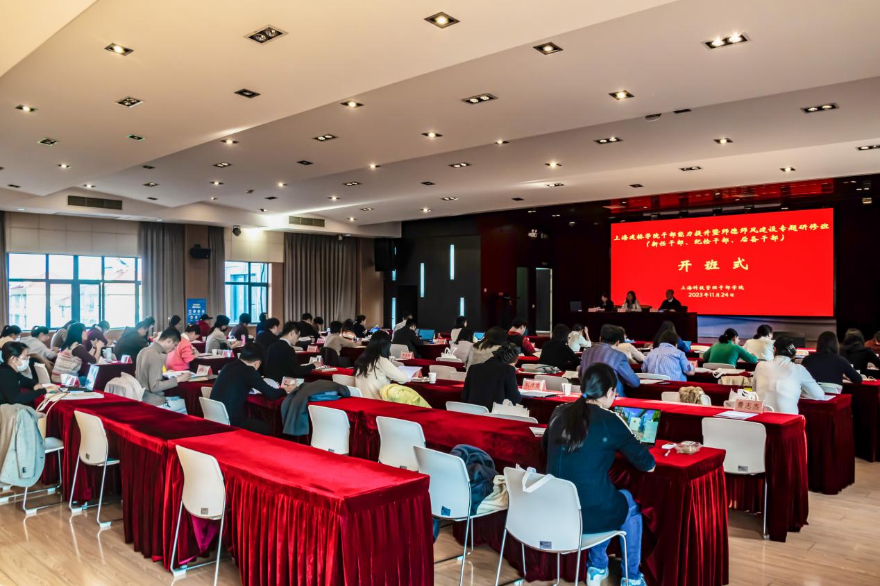 2023年11月24日-25日,上海建桥学院新任干部能力提升暨师德师风建设专题研修班在上海科技干部管理学院举行,校长朱瑞庭、校党委书记江彦桥、校党委副书记夏雨参加了研修班并授课,研修班由人事组织处副处长、党委教师工作部副部长黄晓星主持,参加研修的学员为近三年新任中层干部和近两年新任后备干部。