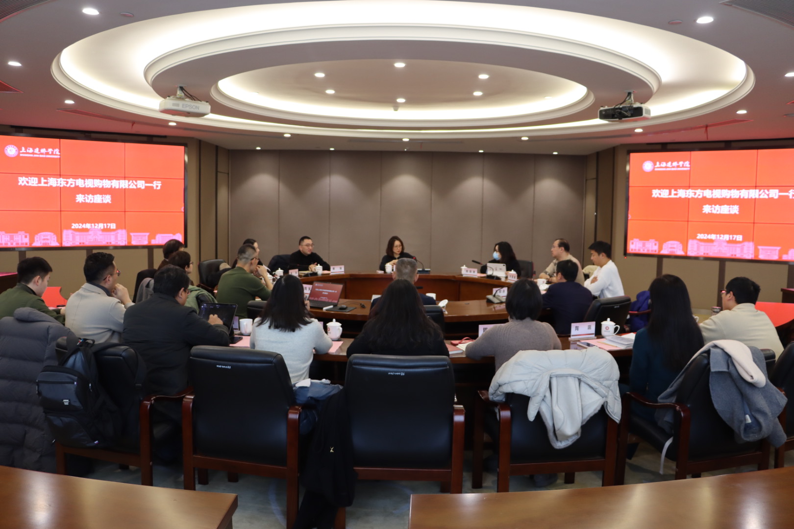 12月17日,上海东方电视购物有限公司党委书记、总裁李卉蓉一行来上海建桥学院考察,集团总裁周天明、副校长张震、校长助理王邦永以及产教融合促进中心、新闻传播学院、商学院、外国语学院、职业技术学院、继续教育学院等相关部门负责人热情接待了来宾。座谈会上,张震副校长对东方电视购物来访表示欢迎,并详细阐述了学校向产教融合型大学转型的战略规划,以及在产教融合方面所具备的理念优势、机制优势和资源优势,强调了直播经济领域存在广阔的校企合作前景,期待双方携手共进,共促产教融合新发展。周天明总裁介绍了集团和学校的发展历程、现阶段的产教融合工作方案思路以及所取得的成效,表示学校的转型和东方电视购物的转型目标高度契合,希望双方围绕企业直播业务、学校人才培养等开展紧密合作,实现互利共赢,携手提高企业竞争力和学生就业力。东方电视购物渠道运营中心副总经理赵青详细介绍了东方购物的发展历史、行业地位、业务模块和转型思路。李卉蓉总裁在听取了双方的介绍后,对学校以终为始、逆向设计的产教融合思路给予高度肯定,认为校企之间可以互为需求、互相供给,实现双向奔赴。她补充介绍了公司直播基地建设、直播业务从传统电视大屏向移动端小屏的转