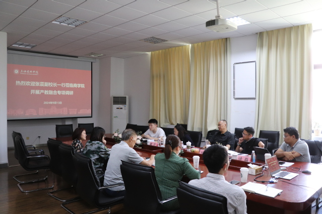 9月13日下午,上海建桥学院副校长张震带队,校长助理、产教融合促进中心主任王邦永,继续教育学院院长葛凤、产教融合促进中心副主任徐磊一行,莅临商学院调研指导产教融合推进工作。商学院党政班子出席,商学院院长高健汇报情况,校长助理、产教融合促进中心主任王邦永主持会议。商学院院长高健从“教育理念、学科设置、师资队伍、学生发展”等方面就学院的基本情况做简要汇报,着重汇报了学院各系对照行动方案7条措施系统推进产教融合工作情况。高健院长讲到,学院未来将着重推进向科研教学和社会服务协调发展的产教融合型学院发展。目前,在学校的相关指导下,学院主导系室明确目标,协同推进有序发展。未来也将持续推进国际化建设,探索利益共享机制,聚焦谋划建产业学院和实体公司。商学院党委书记刘爱香表示,学院党委、学院各基层党组织要为产教融合推进工作提供坚强的政治引领和政治保障,在坚持社会主义办学方向的前提下,不断探索产教融合的新路径,形成二级学院产教融合的“新质生产力”,办好人民满意的教育。商学院教学副院长尹卫华、党委副书记俞海燕分别从教育教学和学生管理的层面汇报了对产教融合工作的推进思路。校长助理、产教融合促进中心主任王邦永,