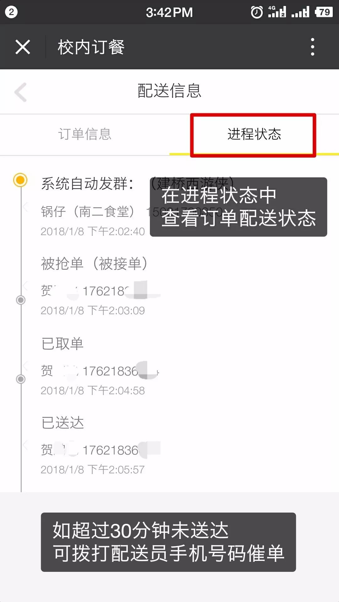 试营业期间我们也在不断优化配送效率,争取把大家的订单在30分钟内送单,大家也可以通过下图的方法实时查看自己订单的配送状态。