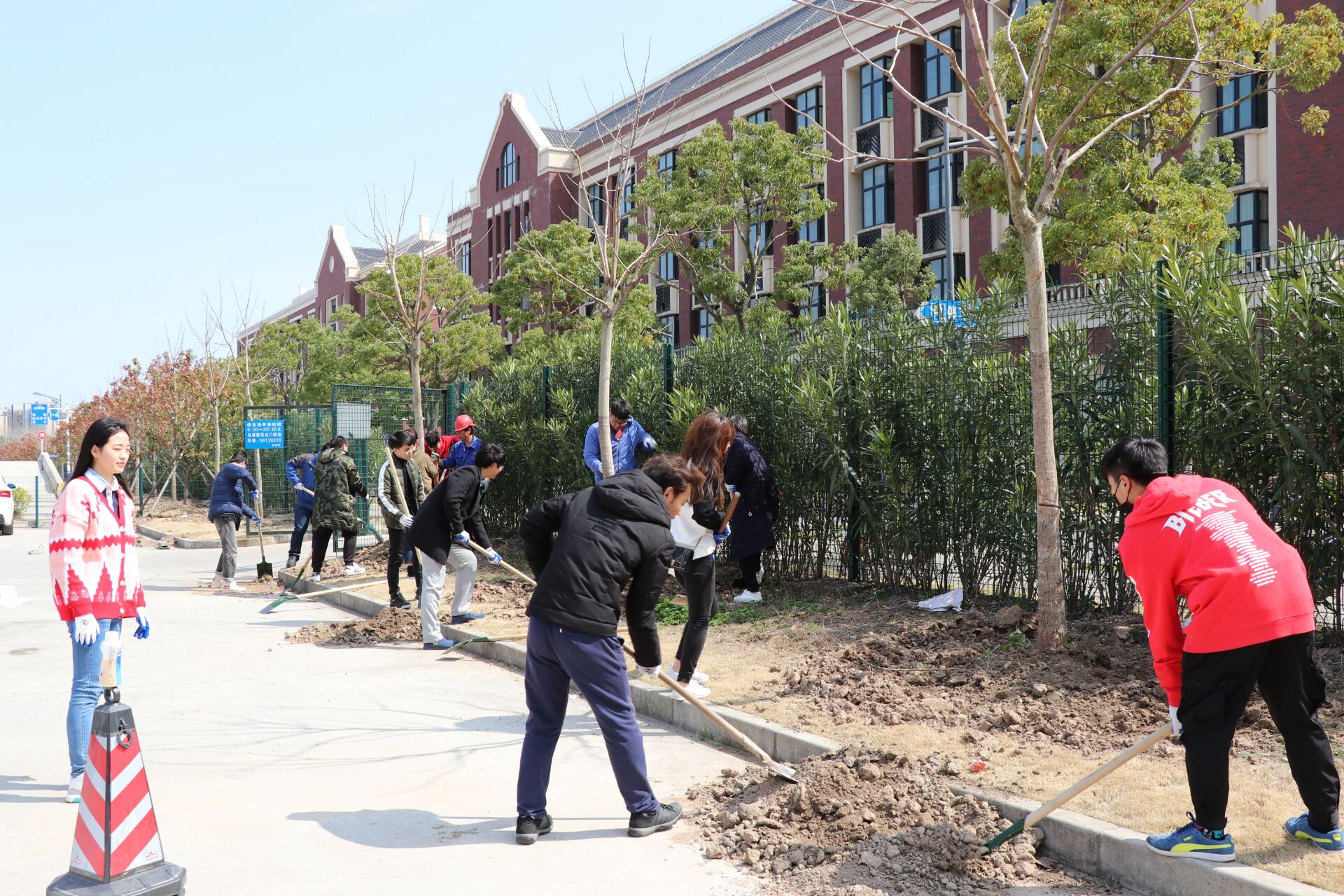 迎接第40个植树节到来,树立社区人环保理念,3月12日下午,学生社区服务中心开展校园植树活动。上海建桥集团董事陈胜财、各学院社区辅导员、学生社区服务中心老师及社区骨干代表参加活动。