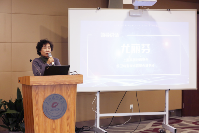 (上海高等教育学会保卫专业学术委员会秘书长尤丽芬讲话)