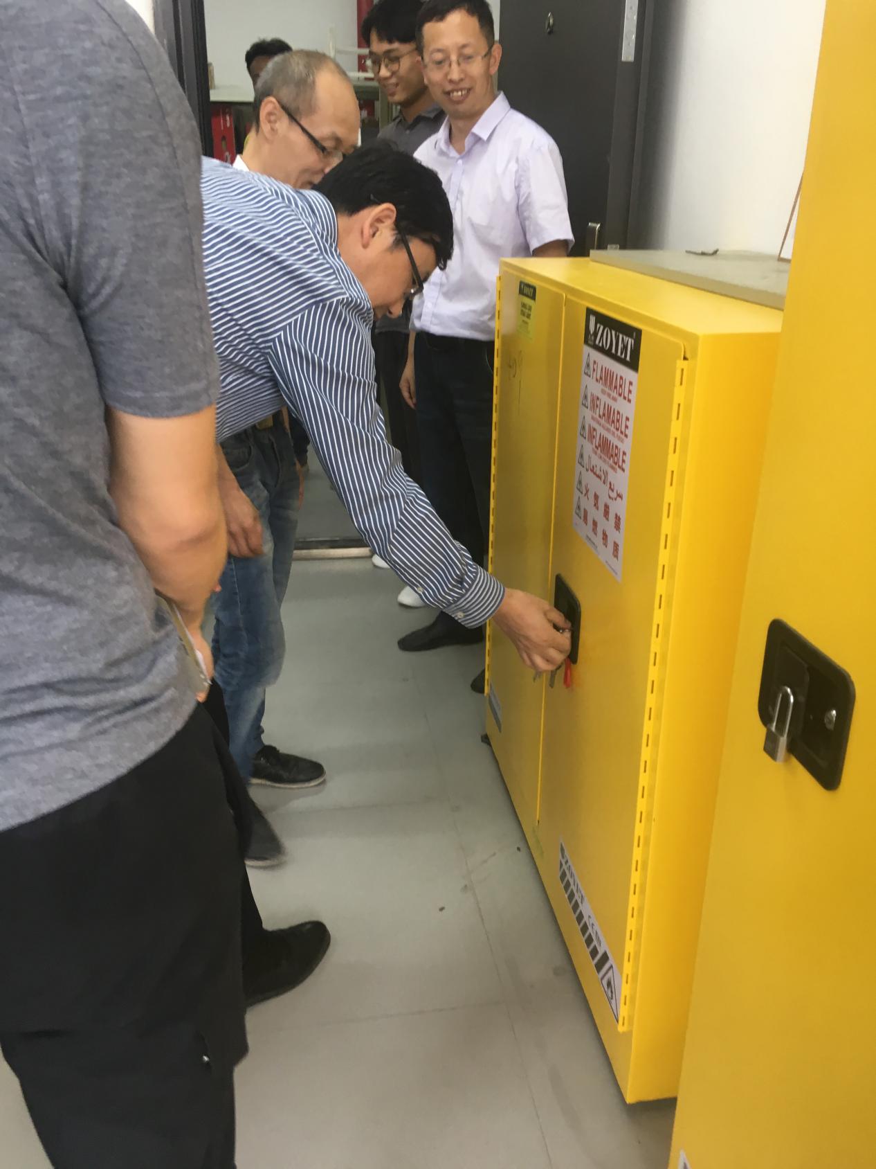 当来到学院储藏室时,朱校长询问了珠宝学院工作人员有关危险化学品的日常管理,查看了相关的记录,并亲自检验了危化品储藏柜双人双锁制度的落实情况。随后朱校长一行检查了南宿舍区的垃圾分类情况,对垃圾分类与南10宿舍区地下空间利用的可行性与工作人员进行了探讨。最后,朱校长一行来到北区新宿舍,对刚投入使用的人脸识别闸机进行了测试。同时,朱校长对学校机动车、电动自行车的管理方案提出了宝贵意见,要求尽快落实相关措施,确保校内师生交通安全。