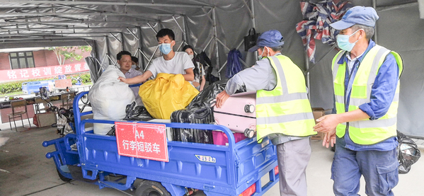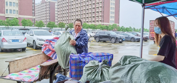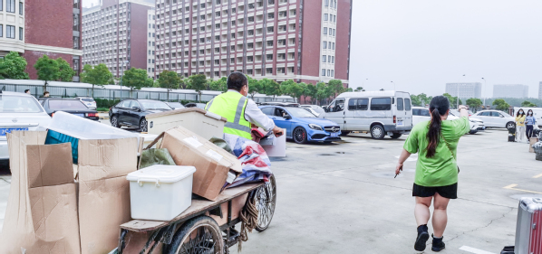 因外来人员及车辆无法进入校园,给毕业生搬运行李带来了些许不便,为缓解毕业生搬运行李的压力,来自于后勤各个部门的员工,发扬雷锋精神,临时组建了一支毕业生行李运送队。