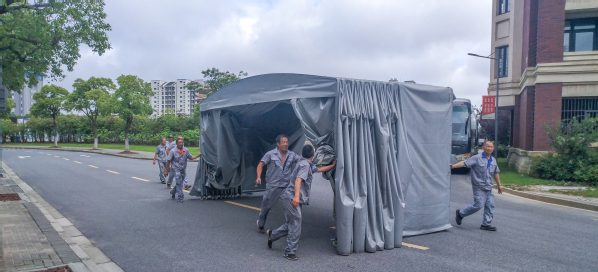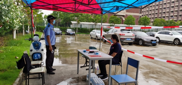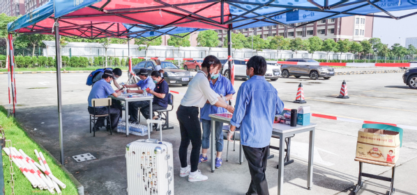 (安保中心在停车场设置检测核验区)