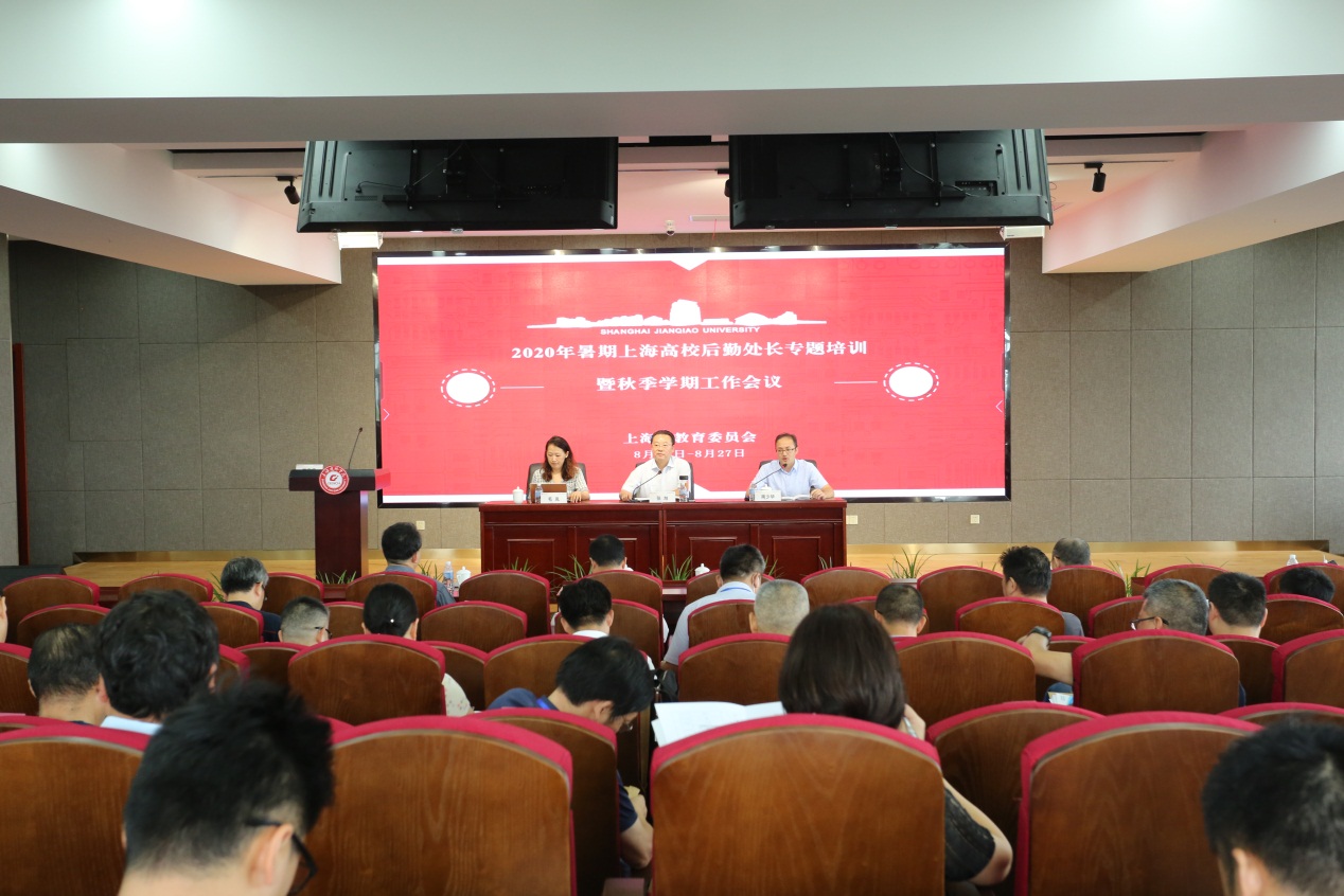 2020年秋季上海高校后勤处长专题培训暨秋季学期工作会议,于2020年8月26日至27日在上海建桥学院举行,全市高校后勤处长、上海市学校后勤协会、上海教育后勤管理中心、上海高校后勤服务股份有限公司、学校垃圾分类推进办等相关同志110余人参加了此次培训暨会议。市教委学校后勤保卫处张旭出席会议并作开班动员。我校党委书记江彦桥出席会议并致欢迎辞。