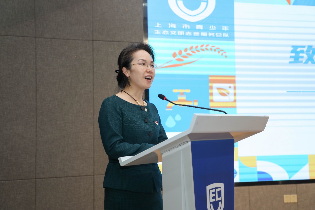 她首先对积极响应并热情参与本次活动的领导、老师及青少年生态文明志愿者们表示热烈的欢迎和衷心的感谢。她指出:生态环境是人类赖以生存和发展的基本条件,但是随着我们国家经济的快速增长,经济社会发展与资源环境的矛盾越来越突出。面对新时期、新阶段、新任务,希望各位志愿者大力宣传生态文化,积极倡导环保道德,从身边力所能及的事情做起,用实际行动影响和感召更多的人投入到生态环境保护与建设中来。从而在全社会营造关注青山绿水、节粮爱粮、垃圾分类、河流保护的良好氛围,助力美丽上海建设。