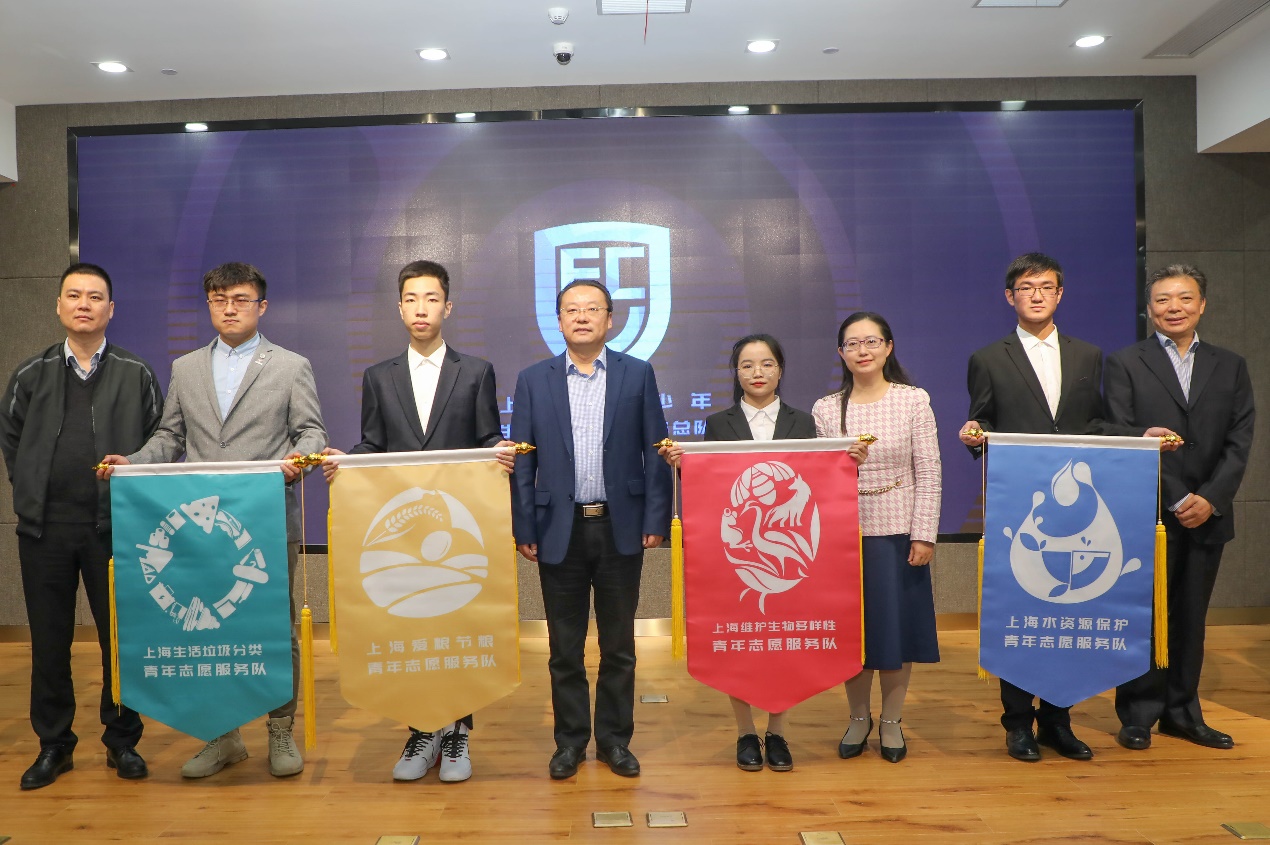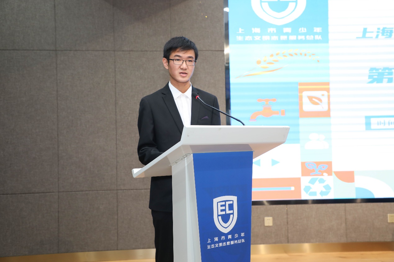会上,市教委、团市委、市绿化市容局、市水务局领导为学生代表授予了“垃圾分类”“爱粮节粮”“水资源保护”“生物多样性维护”四面主题志愿服务队旗。我校大学生自我管理委员会主席陈忠祥同学作为上海市青少年生态文明志愿服务总队第一届学生主席团成员接受授旗并发言。他承诺在今后的学习和生活中坚决做到勤俭节约,爱护生态环境,将带领我校志愿者服务团队积极开展生态文明系列活动,激发学生对环境的热爱,扩展大家对生态文明的认知,带动更多的师生加入到生态环境保护中来。