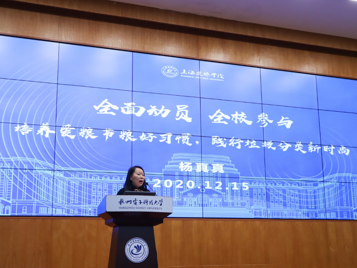 为了进一步推进浙江高校垃圾分类工作,12月15日,浙江省高校生活垃圾分类现场学习交流会在杭州电子科技大学召开,浙江省56所高校的250余人参加了此次交流会。我校后勤保卫处处长杨真真受邀代表上海高校在会议上做了典型发言。