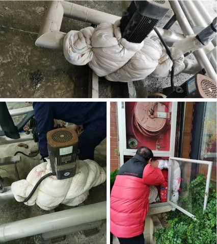 安全保障中心对室外消防设施进行保暖防护。维修保障中心重点对校内水、电、气等设施设备检查,组织好抢修队伍,做好供水、供电、供气设施的防冻保暖和门窗设施检修,做好水管、水箱、阀门的防冻与检修,以确保其在极端天气下能够正常运行。此外,在寒潮来临之前检查了车棚、简易工棚、温室花棚等区域和空调外机等高空构筑物,加固棚架等临时搭建物,设置警示标志,以防垮塌、坠落等造成意外伤害事件。