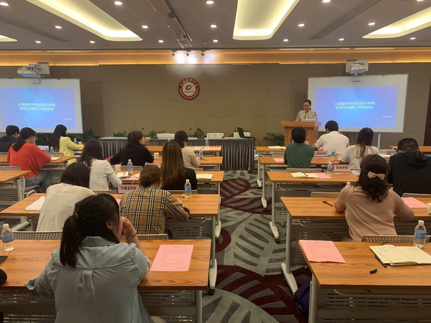 李婕老师首先就我校2020年垃圾分类工作做了总结报告,并对各个学院在2020年垃圾分类工作中做出的贡献表示感谢。她指出在学院各部门的共同努力下,我校顺利举办了一系列垃圾分类宣传及培训工作,并获得了“2020年度上海生活垃圾分类时效综合考评优秀高校”荣誉称号。