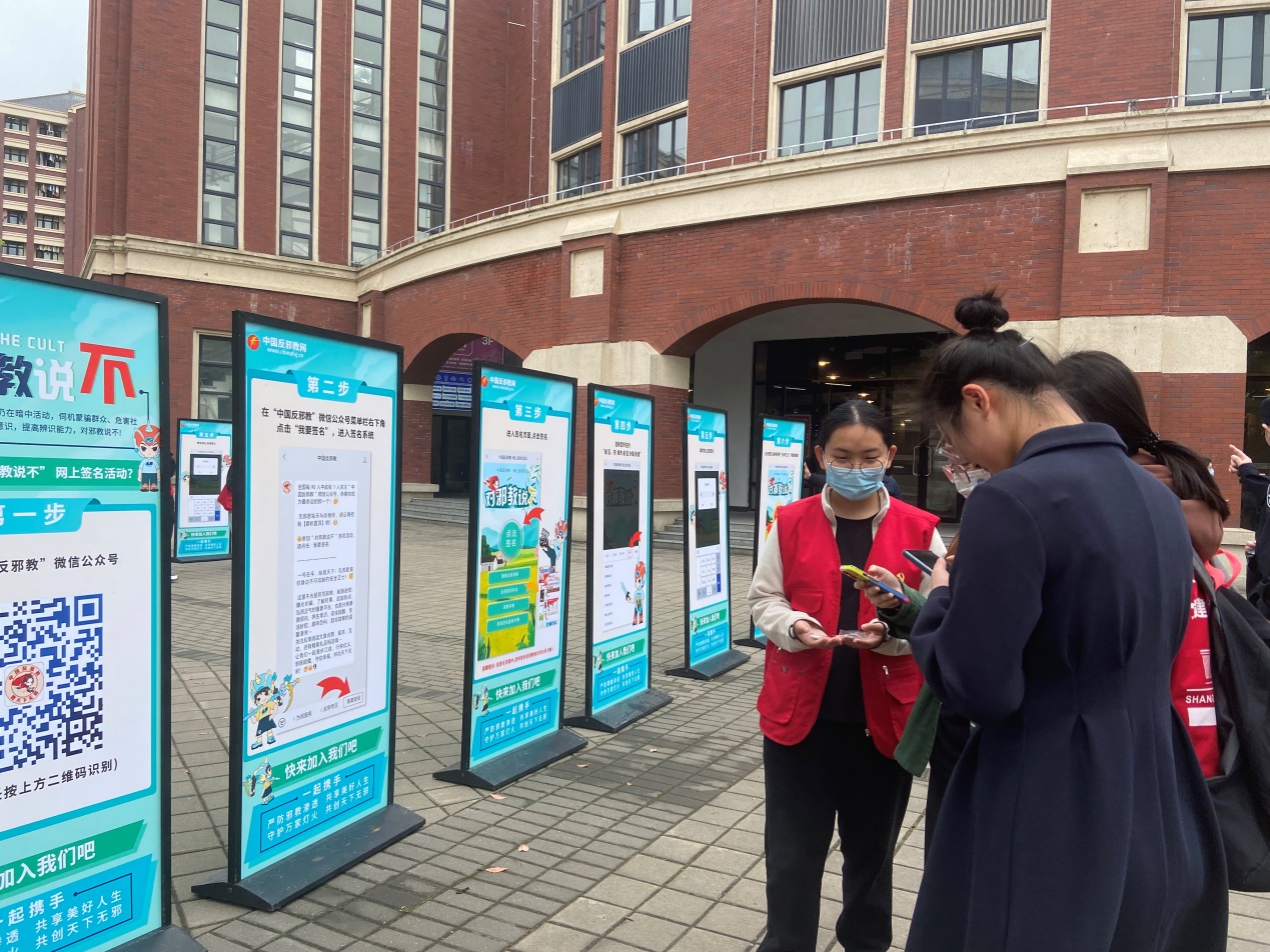 “邪教”对社会秩序与公民人身安全均有不同程度的损害,为进一步帮助广大师生了解、识别和防范邪教组织,营造良好的校园安全环境,我校联合上海市公安局浦东分局、临港高校派出所于2023年4月20日中午在南食堂入口左侧,面向全校师生开展“对邪教说不”反邪教警示宣传主题活动。