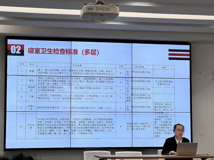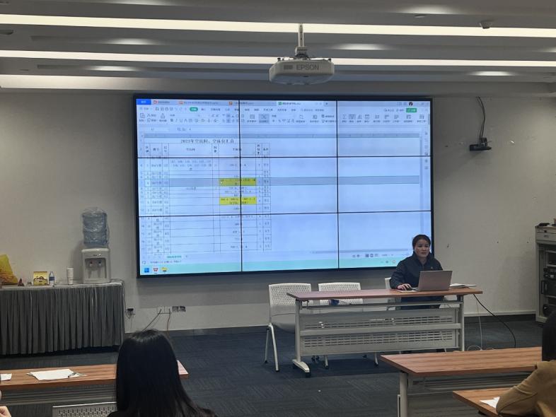 紧接着,由后勤保卫处物业服务中心朱红老师针对各学院2023届毕业生宿舍分布情况、整合方向、空房间空床位等方面进行介绍。朱红表示,今年毕业生人数较多,房间分布较散,希望各学院能够克服困难,充分掌握毕业生离校状态和床位信息,做好宿舍整合工作。