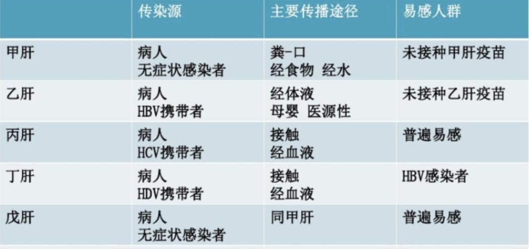 (1)甲肝和戊肝主要经粪-口途径,经消化道传播,多为急性发病,预后良好。