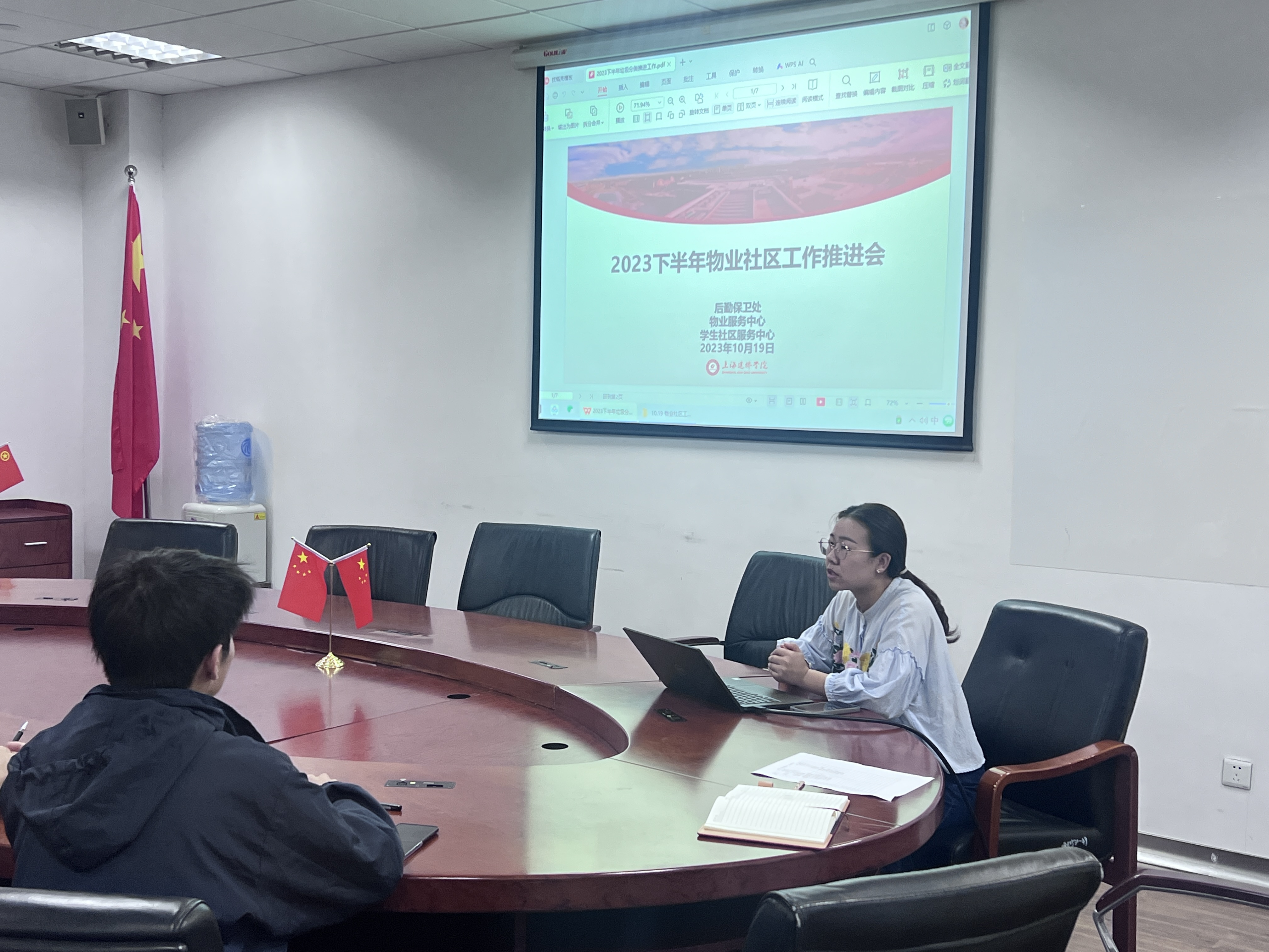 为形成多方互联、协同一致的物业社区治理格局,充分发挥后勤保卫处和各二级学院力量,后勤保卫处于2023年10月19日中午在学生事务中心415会议室组织各二级学院召开2023下半年物业社区工作推进会,后勤保卫处处长助理吴珍珍、各二级学院社区辅导员,物业社区工作人员参与此次会议。