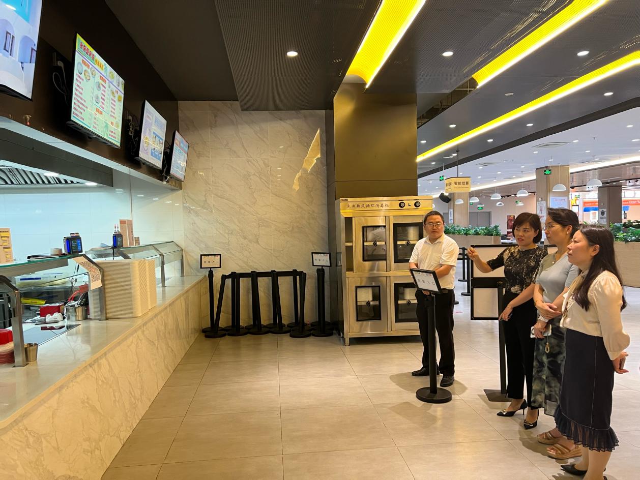 随后她带队依次走访了桔子超市、南三桃源餐厅、南住宿区及北七北八学生公寓,详细了解和掌握暑假期间重点岗位人员值班安排、超市存货情况、食堂供应情况、暑期学生宿舍改造计划、留校学生人数及住宿安排情况等。她强调,在确保校园总体安全的情况下,暑假期间营业超市应当储备足够的必备物资,以满足留校学生的日常需求;食堂食品安全应当坚持严抓不懈;宿舍园区在做好服务保障的同时确保新生宿舍准备及热水改造工作有序开展。日常及时发现、解决存在的安全隐患和问题,为师生提供一个安全、稳定、和谐的学习和生活环境。