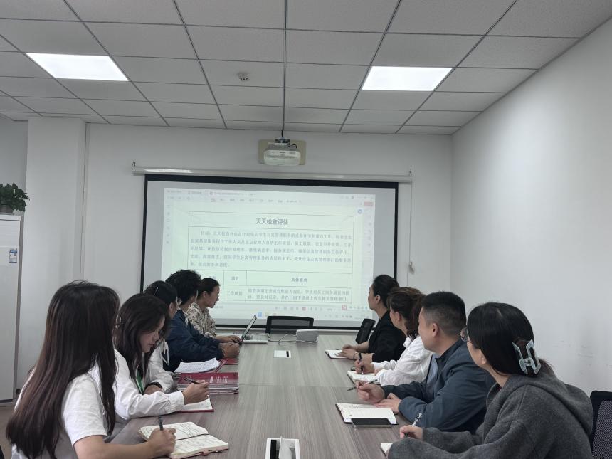 2024年10月8日,后勤保卫处物业社区服务中心围绕上海高校学生公寓“六T”管理达标创建文件开展专题学习研讨。会议由吴珍珍主持,重点学习了“天天检查评估”理念。