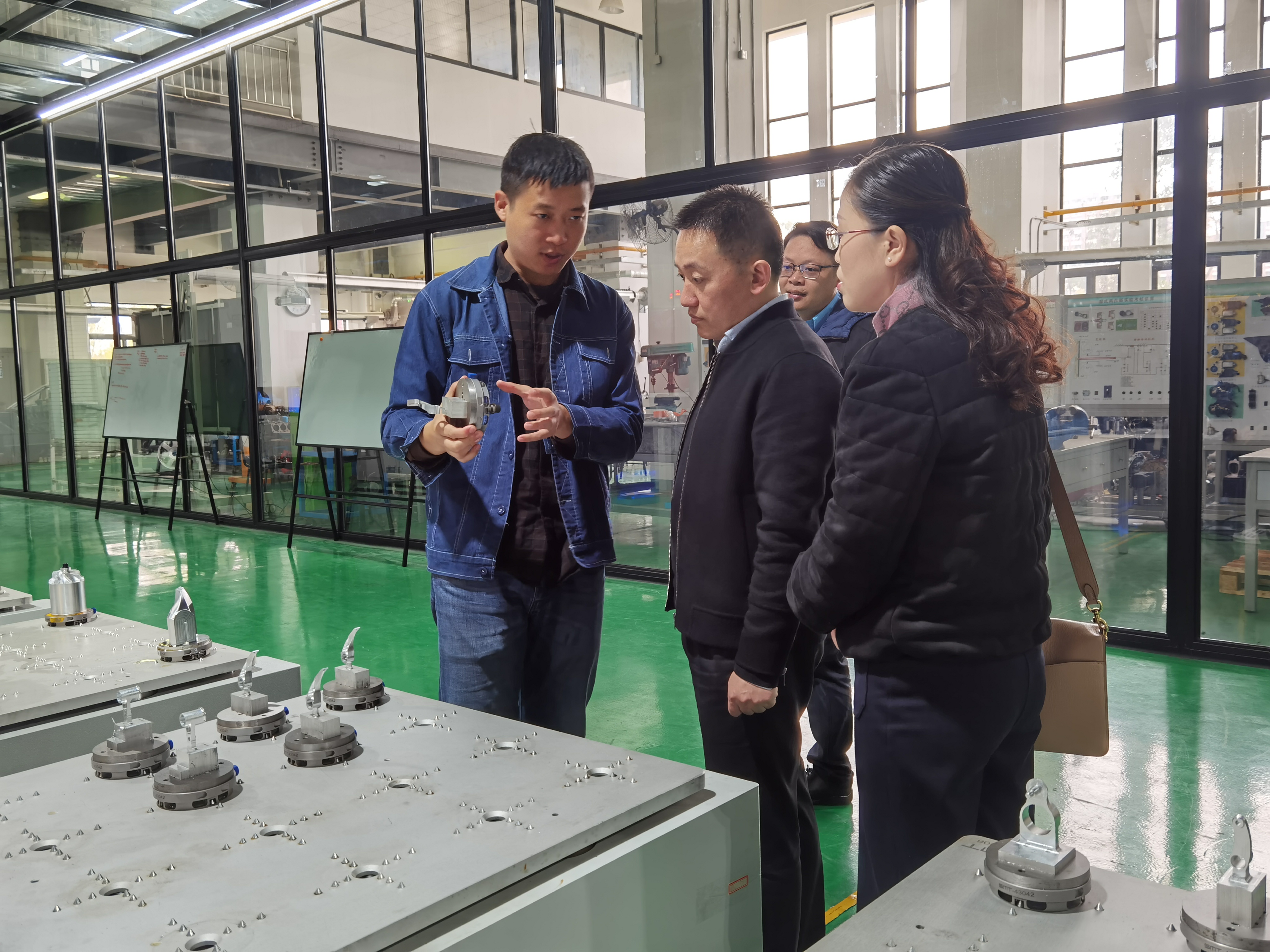 12月8日,贵州省驻沪办副主任刘锐一行来我校参访,调研学校校园建设、人才培养、产教融合等方面工作情况。董事长助理、办公室主任王邦永陪同刘锐主任一行参观了机电学院工程训练中心、珠宝学院作品展厅及专业实验实训室。期间,王邦永介绍了中国(上海)自由贸易试验区临港新片区整体情况和未来前景,并就学校的发展历史、办学理念、办学特色、办学成绩等作了详细介绍。刘锐主任对学校优美的校园环境、一流的硬件设施、先进的办学理念、优异的办学成绩予以充分肯定,认为应用型人才培养理念在学校教育教学全过程中得到了淋漓尽致的展现。他介绍了贵州的区位条件,在了解我校在黔招生情况后,表示将积极帮助学校做好在黔招生宣传。他同时希望学校积极发挥多年来在应用型人才培养方面积累的优势和经验,在职业教育领域与贵州职校开展多层次、多方位的合作。