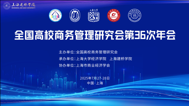全国高校商务管理研究会第36次年会于2025年7月27-28日在上海顺利举行。本次年会由全国高校商务管理研究会主办,上海大学经济学院和上海建桥学院联合承办、上海市商业经济学会协办。来自东北财经大学、贵州财经大学、河北经贸大学、河南牧业经济学院、江苏大学、江西财经大学、闽南师范大学、南京财经大学、内蒙古财经大学、内蒙古师范大学、山东财经大学、山东工商学院、山西财经大学、上海大学、上海建桥学院、天津财经大学、中央财经大学等23所高校40余名专家学者出席了会议。本次年会主题为“数字经济与商务管理变革”,围绕数字经济与商务管理变革领域的前沿议题,来自全国高等院校商务管理研究领域的专家和青年学者展开多维度、深层次研讨。在年会开幕式上,上海大学党委常委、副校长聂清,上海建桥学院校长朱瑞庭分别代表承办单位致辞,对与会专家学者表示热烈欢迎,并预祝年会取得圆满成功。全国高校商务管理研究会会长、江西财经大学工商管理学院院长胡海波教授指出,本次年会创新采用“同城双校合办”模式,聚焦“数字经济与商务管理变革”主题,体现了三个方面的特点:立足改革开放实践、注重理论联系实际;突出“学科交叉融合”;开展自贸试验区实