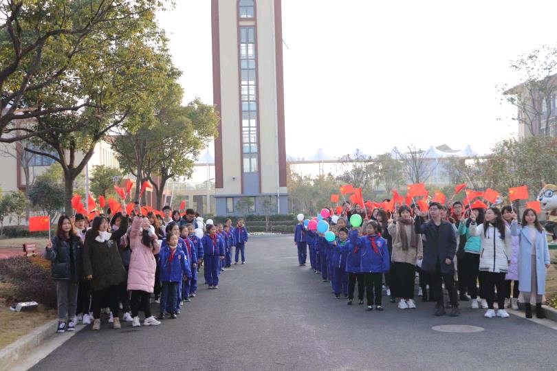 2019年12月27日,我校与明珠小学合作开展了“祖国在我心中”服务学习快闪活动。我校谢丹萍老师领唱,沈霖芸同学伴舞,在场同学们合唱了《我爱你中国》《不忘初心》两首歌曲。明珠小学学生带来歌舞《祖国在我心中》。最后,两校学生以一首《我和我的祖国》结束了本次快闪活动。此次快闪活动,以传唱爱国主义歌曲为载体,宣扬了中华民族的优良传统,激起学生的爱国主义热情,培养了大家的爱国情操。新时代的青少年,正用他们的脚步,以自己的节奏,踏出新的道路。